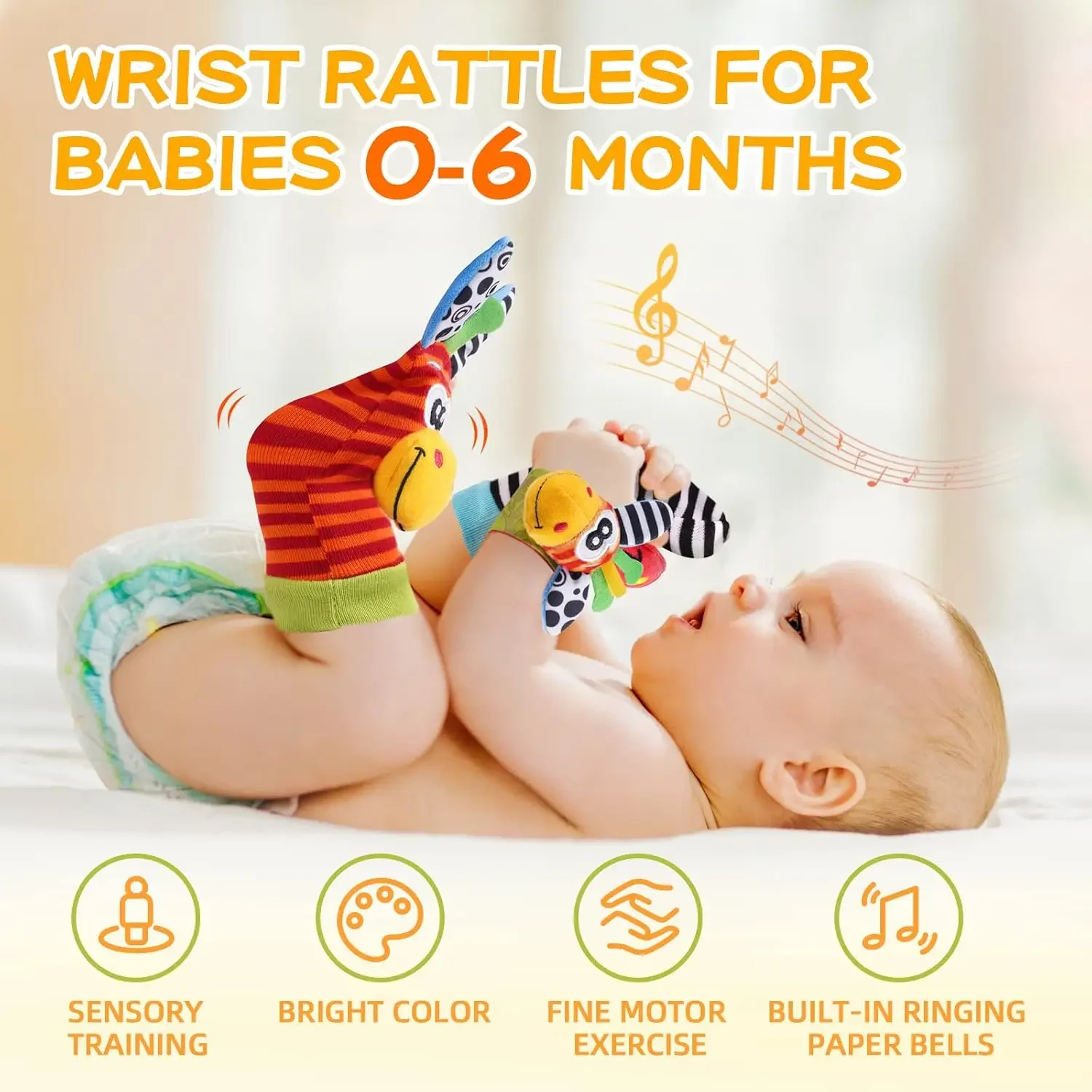 طقم ألعاب رضّع تفاعلية للمعصم والقدم – 4 قطع بخاصية الخشخشة (0-12 شهر)